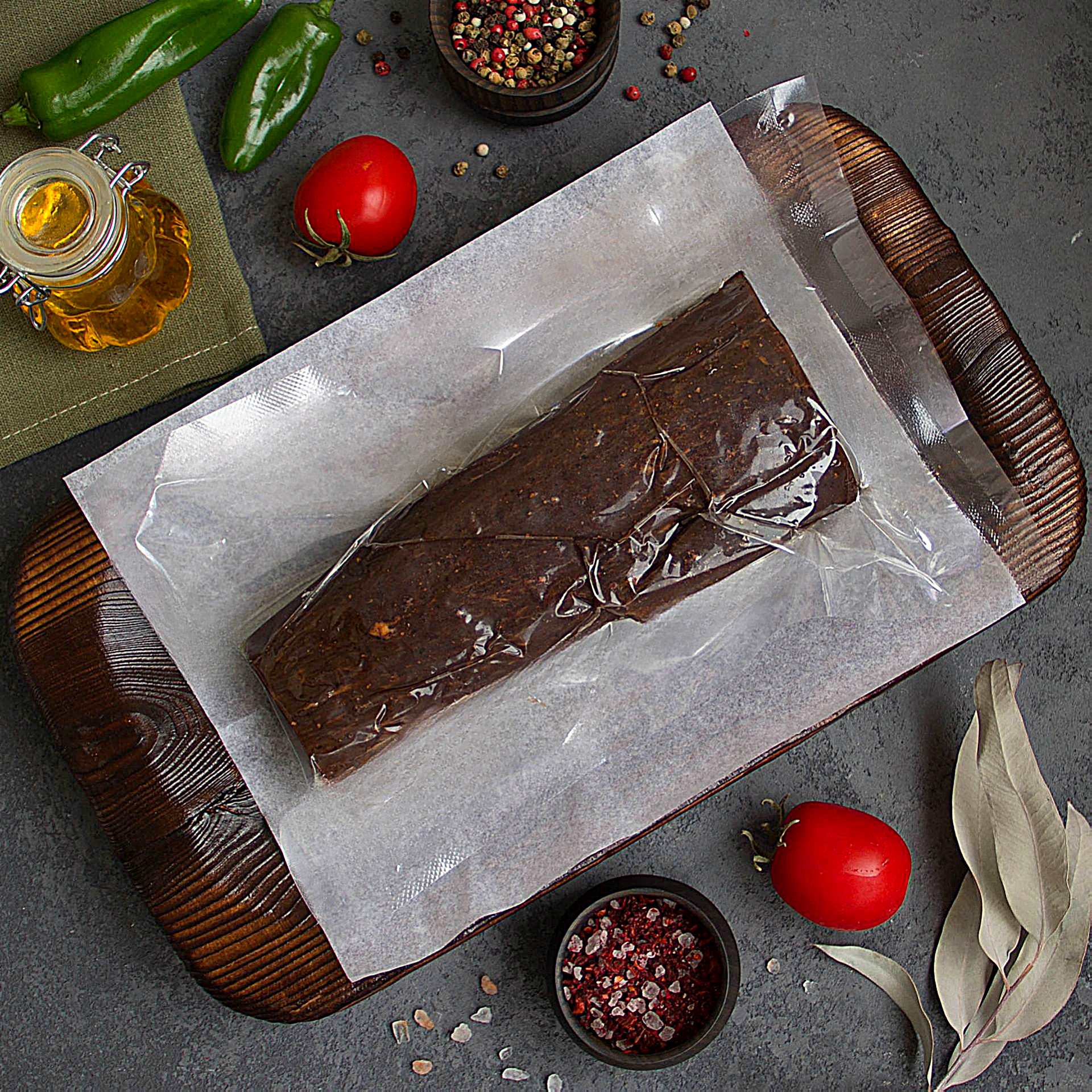 Вырезка «Говяжья» сырокопчёная — это продукт для истинных ценителей классических мясных деликатесов. Отборная говядина проходит длительный процесс посола с использованием нитритной и пищевой соли, а также ароматной смеси перцев, после чего выдерживается и медленно коптится при низких температурах. Такой метод позволяет сохранить естественную сочность мяса, придавая ему плотную структуру и глубокий вкус с благородным оттенком копчёного аромата.