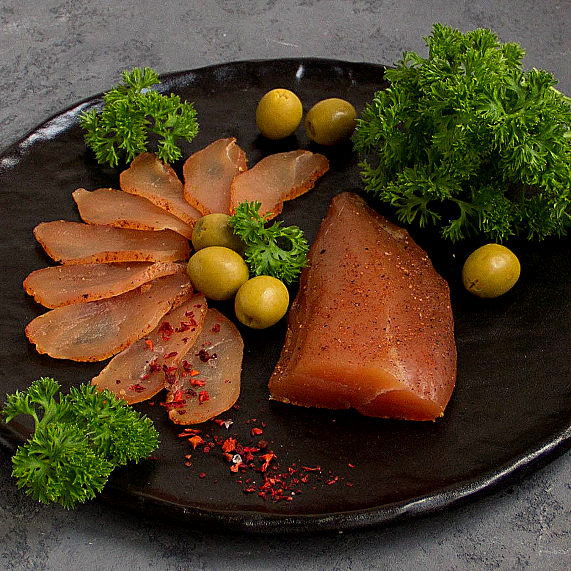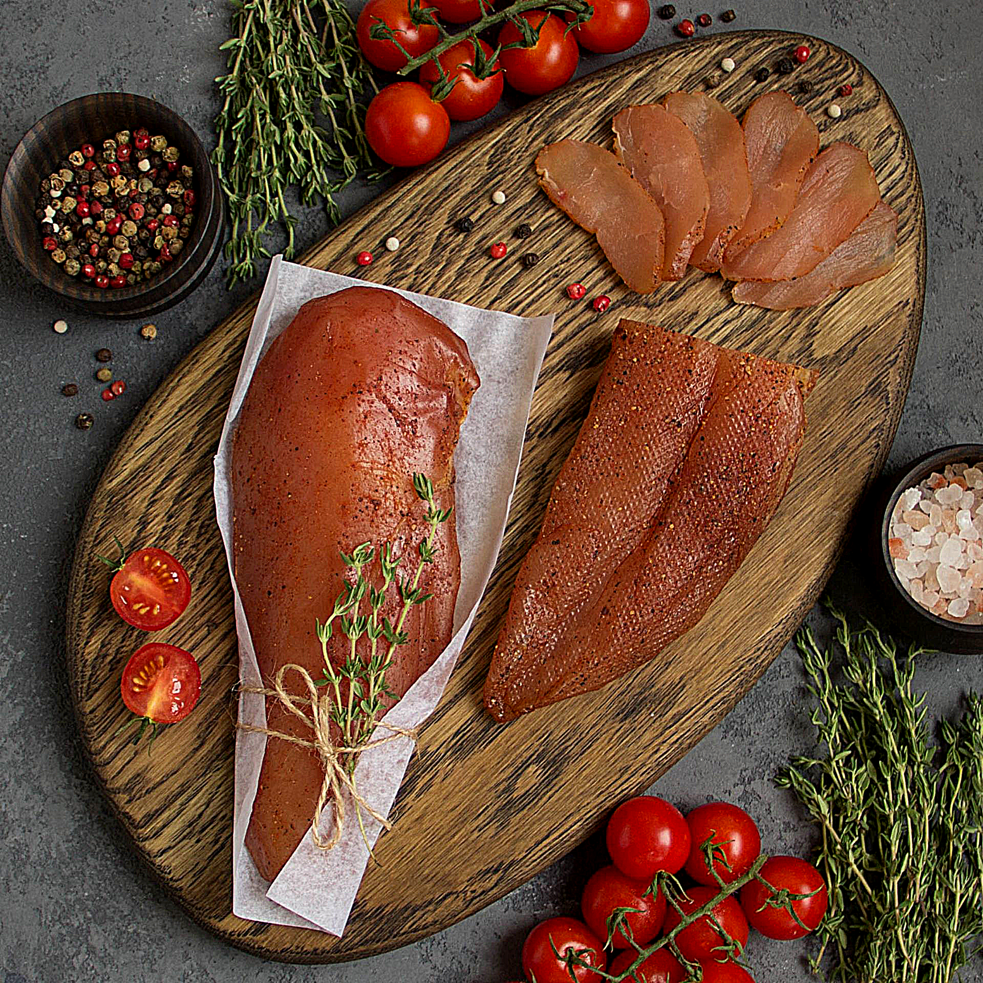 Куриное карпаччо холодного копчения — изысканная закуска с нотами чеснока и перца. Идеально для фуршета, вина и лёгких ужинов.