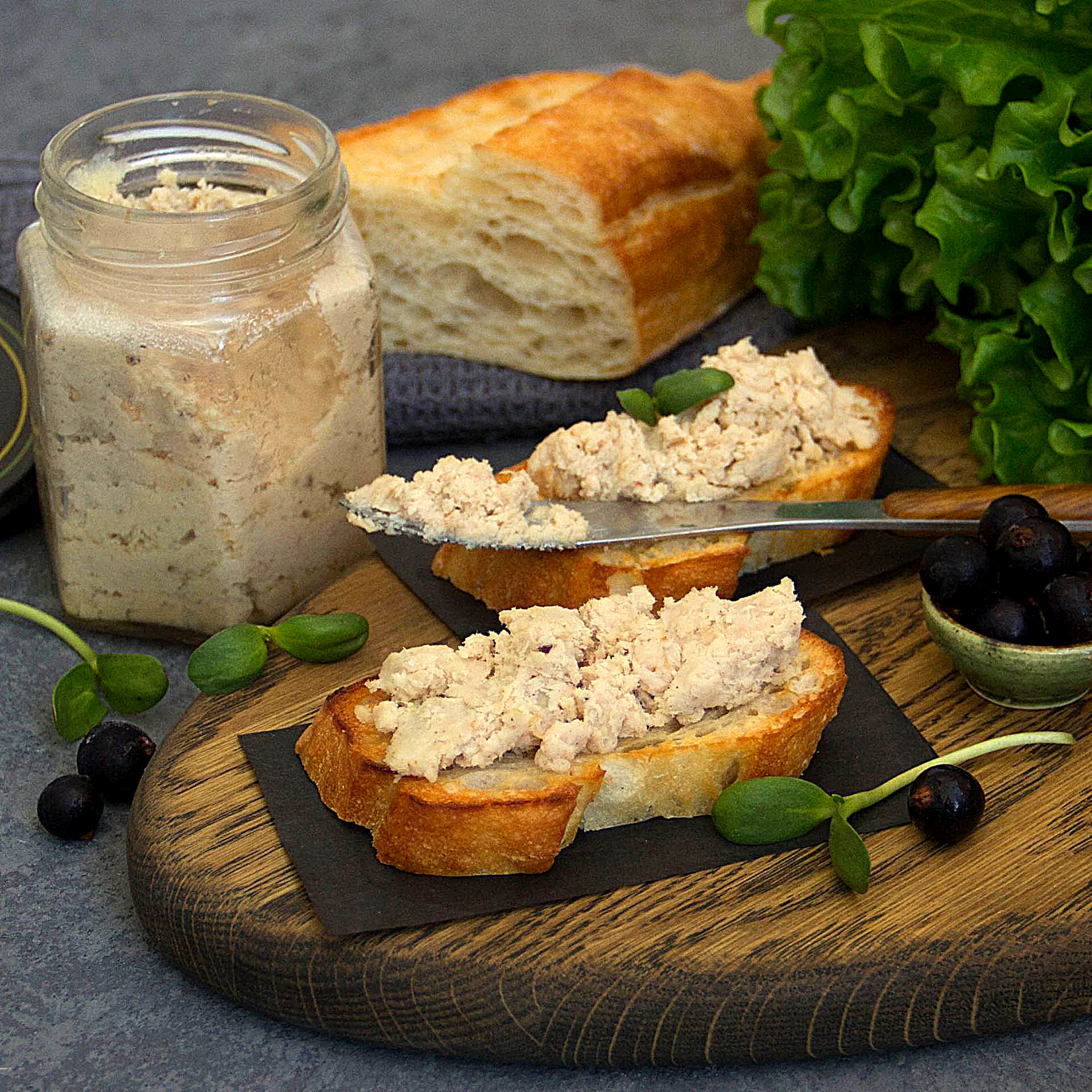 Куриный рийет — нежный паштет с тимьяном и лёгкими цитрусовыми нотами. Бархатная текстура и изысканный вкус для лёгких закусок.