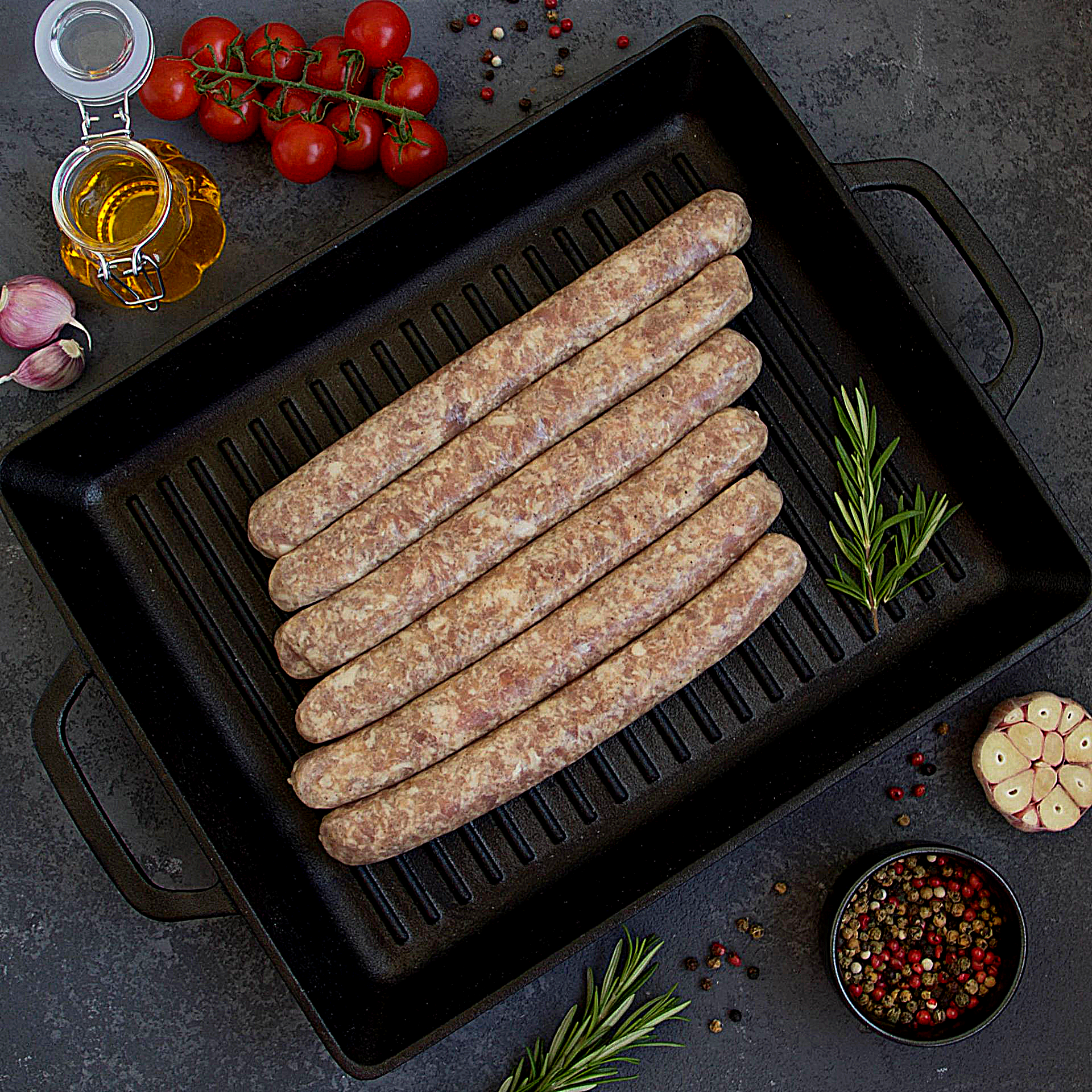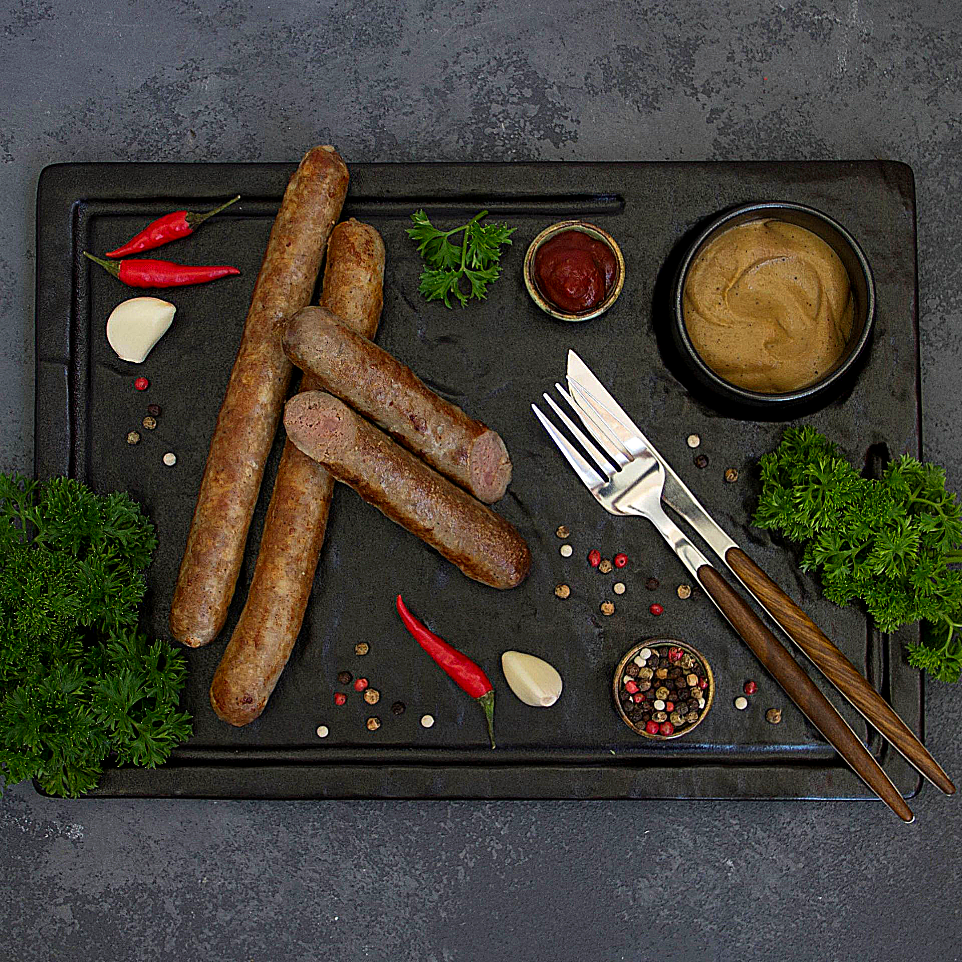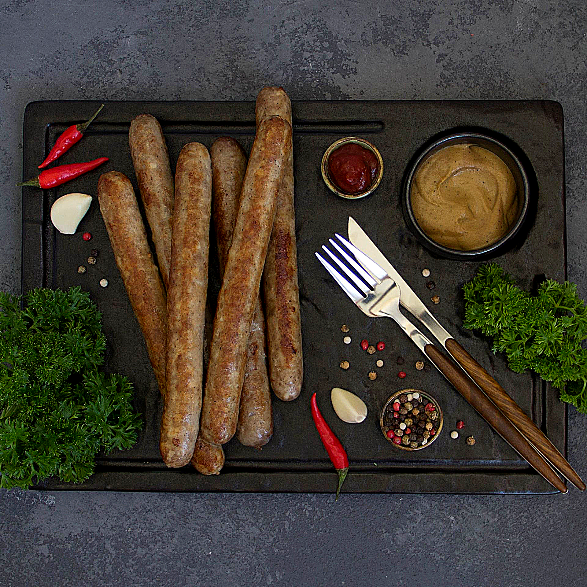 Главная особенность этих колбасок — гармония натуральных специй и правильно подобранного мяса. Смесь перцев придаёт глубину и лёгкое жгучее послевкусие, а чеснок добавляет характерный оттенок домашней колбасы. При жарке колбаски сохраняют сочность внутри и приобретают аппетитную золотистую корочку, которая приятно хрустит благодаря натуральной оболочке.